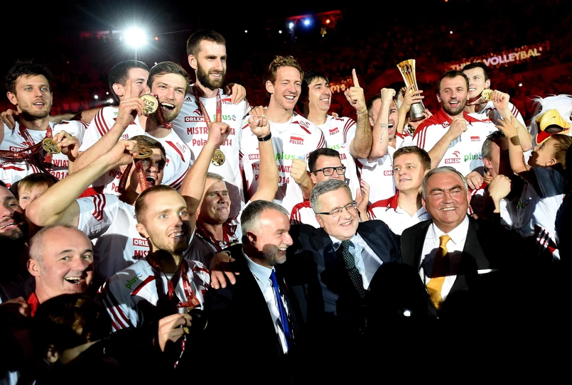 Prezydent Komorowski cieszył się razem z siatkarzami z mistrzostwa świata