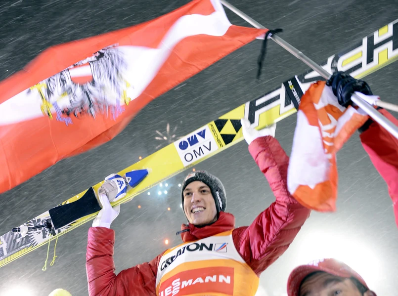 Austriak, który już wcześniej zapewnił sobie zwycięstwo w klasyfikacji generalnej Pucharu Świata, skoczył na odległość 217,5 oraz 213, 5 m. Drugi był Słoweniec Peter Prevc, a trzeci - Piotr Żyła (212,5 i 216,5 m). 8. miejsce zajął Maciej Kot, a 11. - Kamil Stoch.
