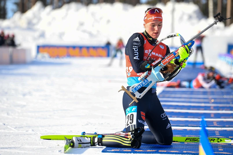 Wyniki: 1. Denise Herrmann (Niemcy) 20.08,6 (1 karna runda) 2. Tiril Eckhoff (Norwegia) strata 5,0 (1) 3. Stina Nilsson (Szwecja) 5,2 (1) 4. Hanna Oeberg (Szwecja) 6,8 (1) 5. Anais Chevalier-Bouchet (Francja) 15,5 (1) 6. Vanessa Voigt (Niemcy) 16,7 (0) ... 27. Monika Hojnisz-Staręga (Polska) 1.14,9 (2) 52. Anna Mąka (Polska) 2.19,7 (2) 61. Kamila Żuk (Polska) 2.45,4 (4) 76. Kinga Zbylut (Polska) 3.22,0 (4) Klasyfikacja generalna (po 16 z 22 zawodów): 1. Marte Olsbu Roeiseland (Norwegia) 685 pkt 2. Elvira Oeberg (Szwecja) 599 3. Dsinara Alimbekawa (Białoruś) 589 4. Hanna Öberg (Szwecja) 525 5. Lisa Theresa Hauser (Austria) 502 6. Dorothea Wierer (Włochy) 454 ... 43.Monika Hojnisz-Staręga (Polska) 95 58.Kamila Żuk (Polska) 41 60.Anna Mąka (Polska) 37