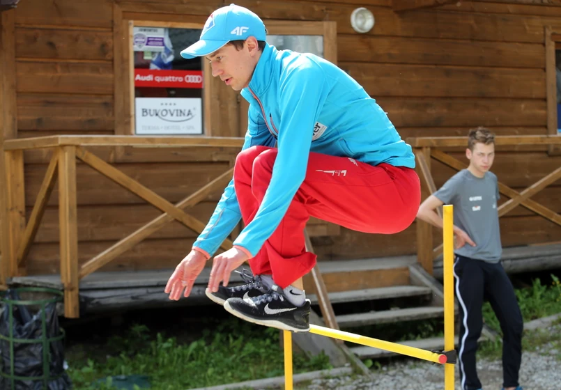 6 Kamil Stoch podczas treningu kadry narodowej skoczków narciarskich w Zakopanem, gdzie przygotowują się do nadchodzącego cyklu Letniej Grand Prix w skokach narciarskich na igielicie